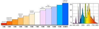 La température de la lampe permet de mesurer la couleur dominante pour notre oeil, exprimée en Kelvin (°K). Le rouge et le jaune ont les températures les plus basses alors que le bleu produit des températures plus élevées. Par exemple, une bougie aurait une température d'environ 1500°K, un coucher de soleil 3000°K, la lumière du soleil vers midi 5500°K, un grand ciel bleu d'été entre 9000°K et 12000°K. En aquariophilie, un tube de couleur à 4000°K donnera une couleur plus "chaude" qu'un tube à 10000°K (couleurs bleutées dites "froides").